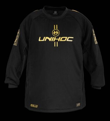 ALPHA EVOLAB ist die neue Premium Goalieserie von UNIHOC, welche in Zusammenarbeit mit Jon Hedlund entwickelt und mit neuem Schnitt umgesetzt wurde. Die Produkte wurden aus den besten auf dem Markt erhältlichen Materialen hergestellt, um absolute Spitzenqualität und lange Haltbarkeit zu bieten. Der Hauptstoff des Goaliepullovers wurde einer COOLMAX-Behandlung unterzogen, um durch eine bessere Luftzirkulation und optimierten Feuchtigkeitstransport für mehr Kühlung zu sorgen. Zusätzliche, dünne Polsterungen auf der Vorderseite und den Armen bieten den Goalies einen besseren Schutz. Seitenteile aus luftdurchlässigem Mesh-Material, strapazierfähige Einsätze aus CORDURA-Gewebe an den Ellbogen für längere Haltbarkeit.